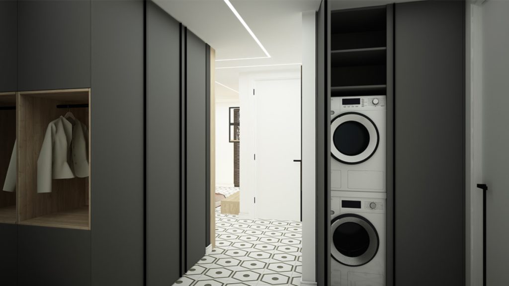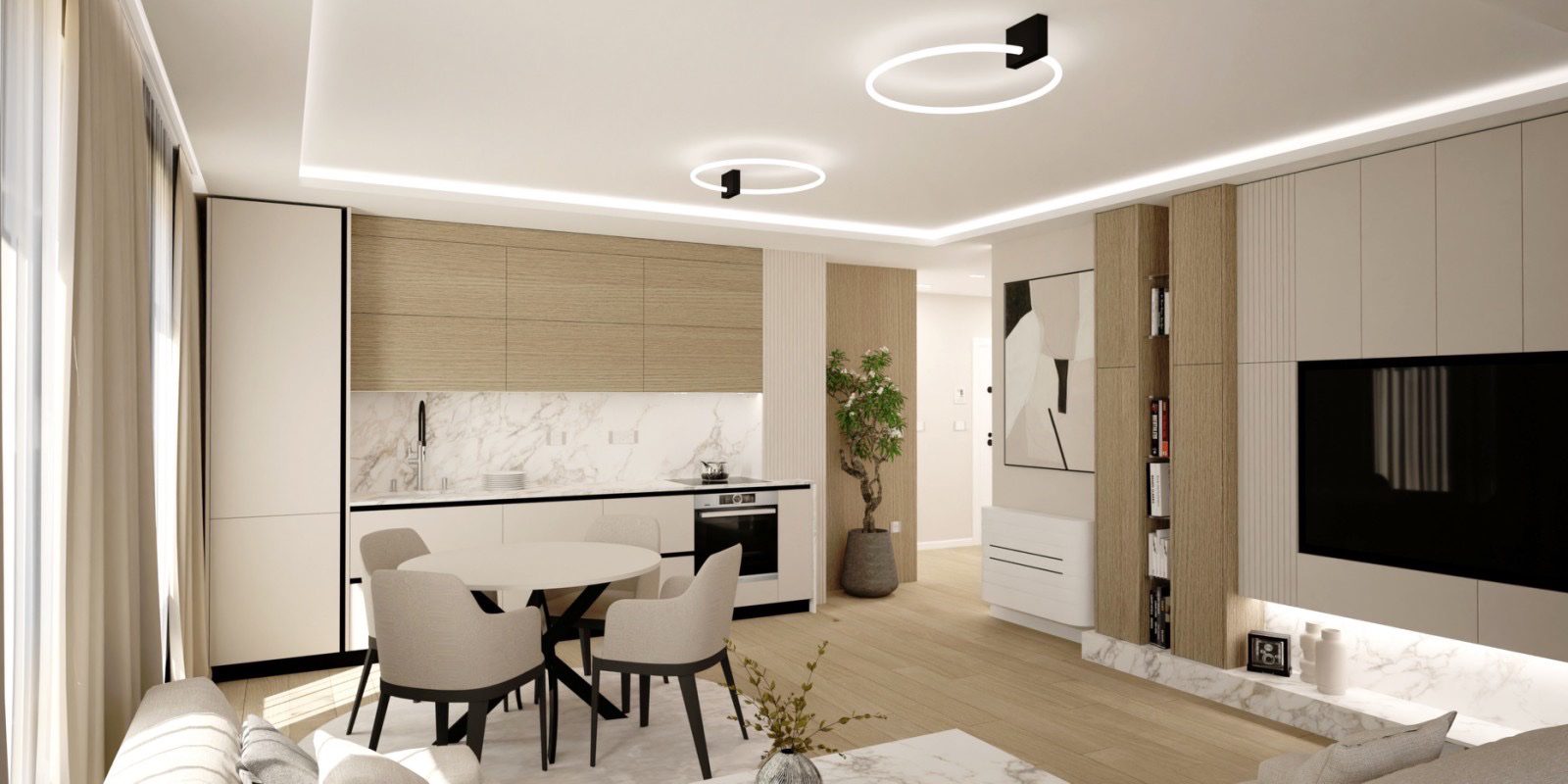 Проектирани са ясни и добре осветени помещения, с предвидени зони за съхранение, които не нарушават естетиката на интериора. Подходът цели не просто добър план, а апартаменти, които имат завършеност и реална стойност за ежедневието.